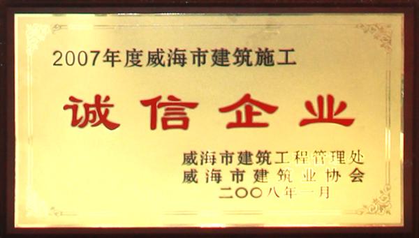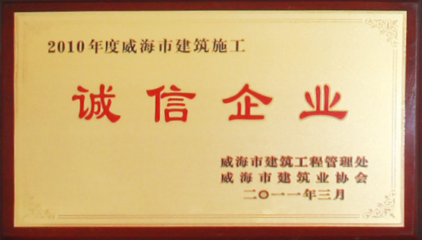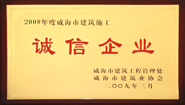 公司連續(xù)八年榮獲威海市“誠信開發(fā)企業(yè)”、“建筑施工誠信企業(yè)”,連續(xù)九年被評(píng)為威海市級(jí)“守合同重信用企業(yè)”,多次被評(píng)為威海市“市級(jí)文明單位”、“質(zhì)量管理先進(jìn)企業(yè)”、 “安全管理先進(jìn)企業(yè)”,乳山市“優(yōu)秀企業(yè)”、“先進(jìn)民營企業(yè)”、“納稅明星企業(yè)”,在社會(huì)上逐步樹立了誠信、穩(wěn)健的企業(yè)形象。